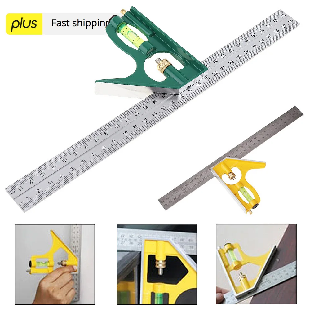 Règle à Angle carré combiné réglable 12 pouces 300mm, 45 / 90 degrés avec niveau à bulle, outils de mesure multifonctionnels