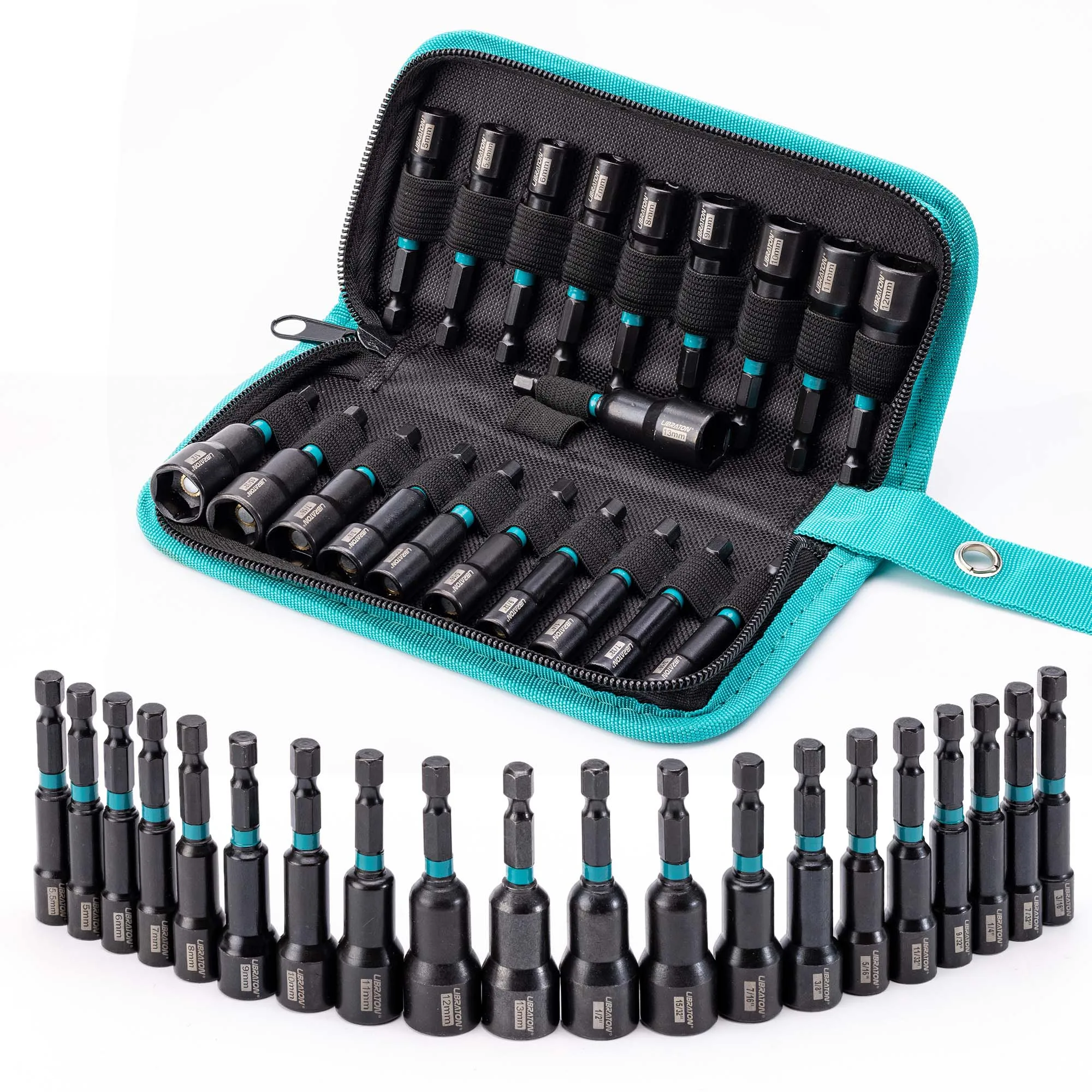 Tournevis à écrou magnétique, jeu d'embouts pour perceuse à percussion 20 pièces 1/4 "métrique 5-13mm et tournevis à écrou SAE 3/16''-1/2''