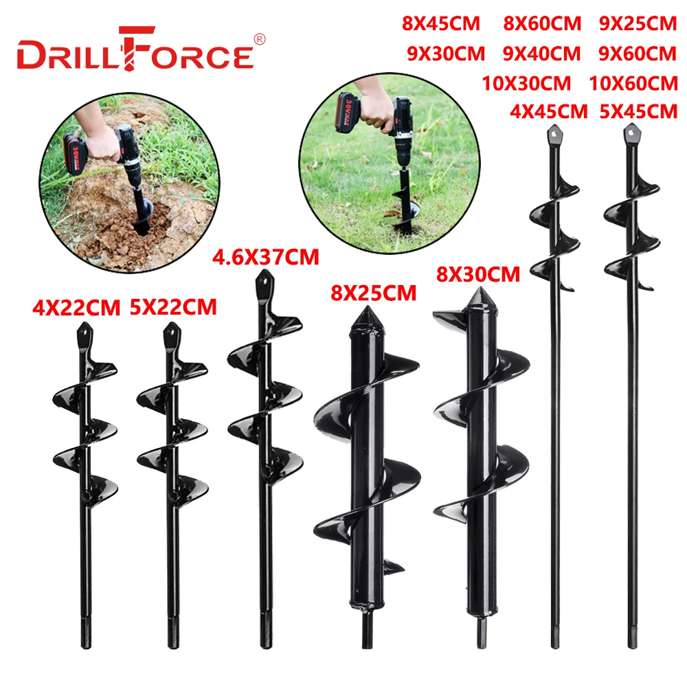 DRILLFORCE terre tarière spirale foret planteur perceuse tarière cour jardinage literie plantation trou pelle remplacement outils de jardin