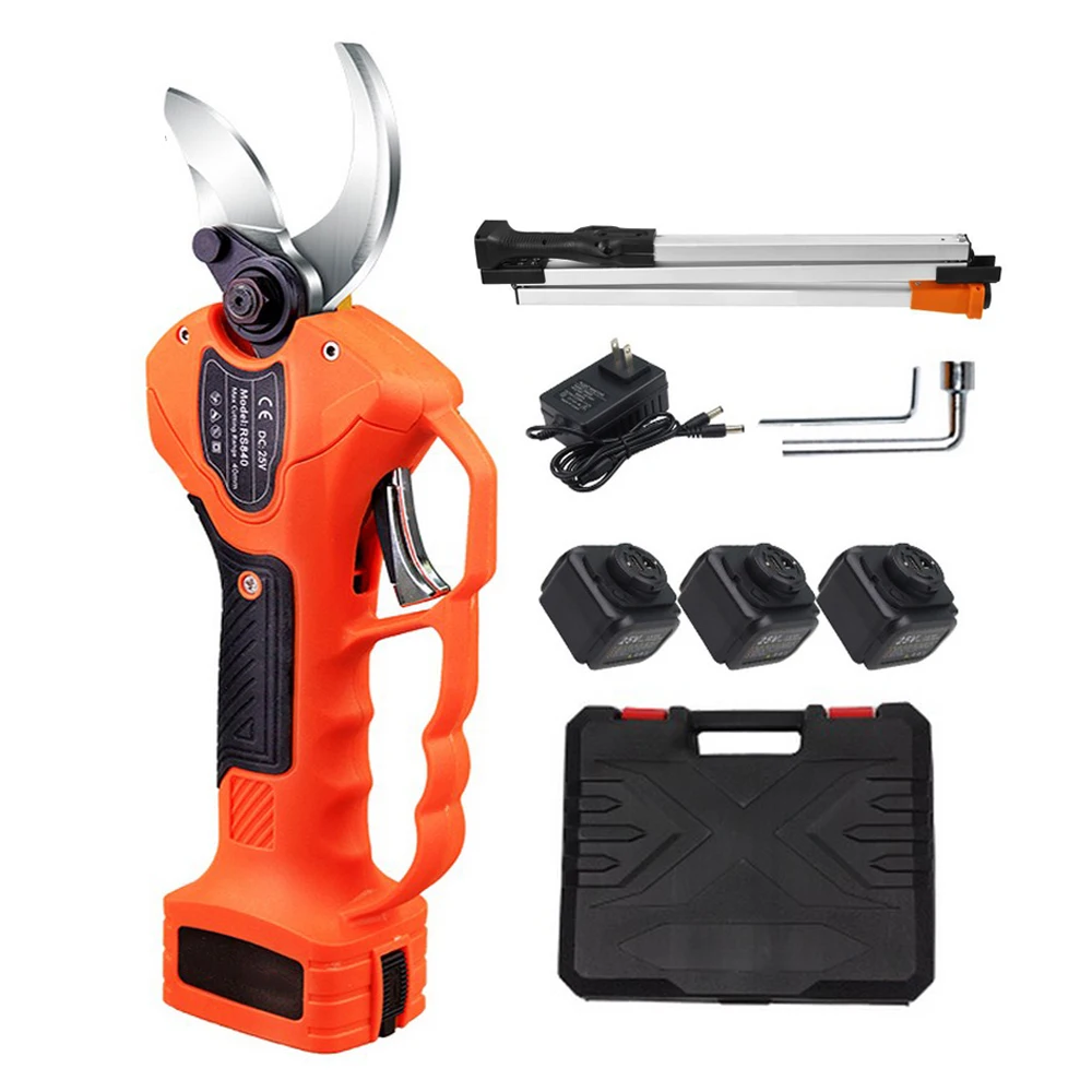 Ciseaux électriques sans fil pour arbres fruitiers, sécateur de jardin, cisailles à branches hautes, 1 chargeur, 2 piles, 40mm