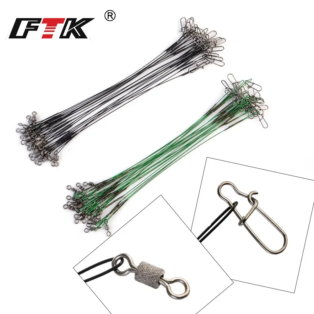 FTK 20 pièces 16cm 20cm 25cm Anti-morsure fil d'acier Leader laisses pour la pêche 50LB avec accessoires de leurre de pêche pivotant brochet bar