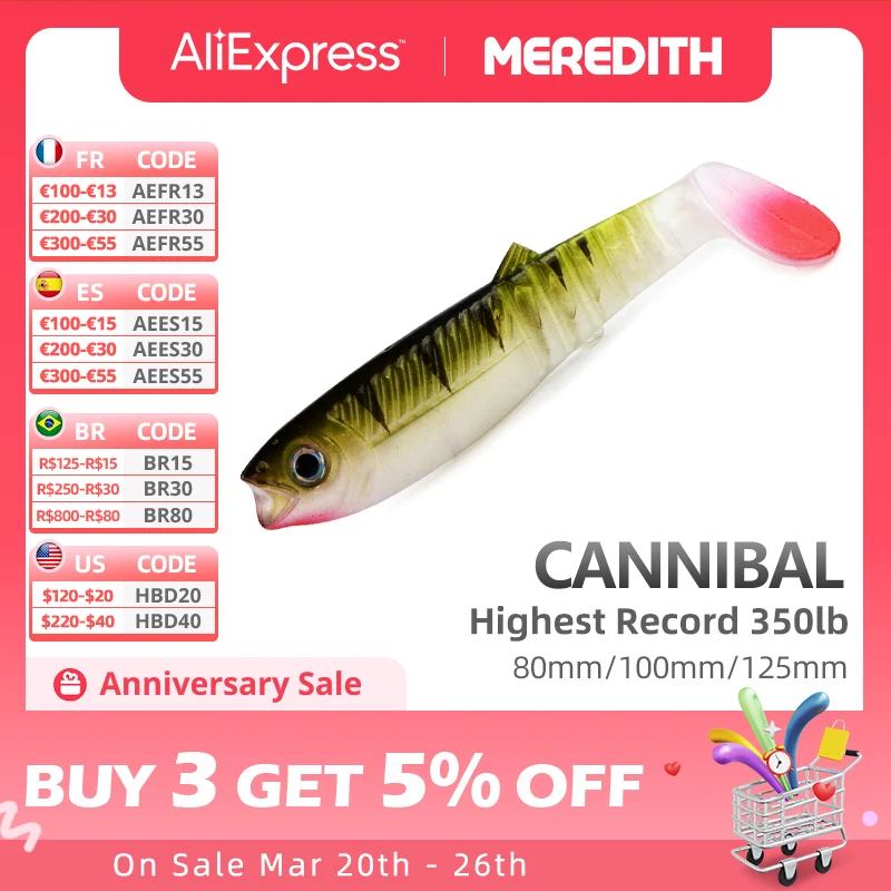 MEREDITH – leurres de pêche souples artificiels en Silicone, 80mm, 100mm, 125mm, Wobblers