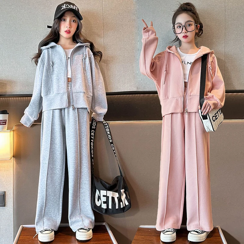 Ensemble de vêtements pour adolescentes de 5 6 8 10 12 14 ans, manteaux + pantalons décontractés à capuche avec fermeture éclair, tenues 2 pièces, survêtement pour enfants, printemps-automne