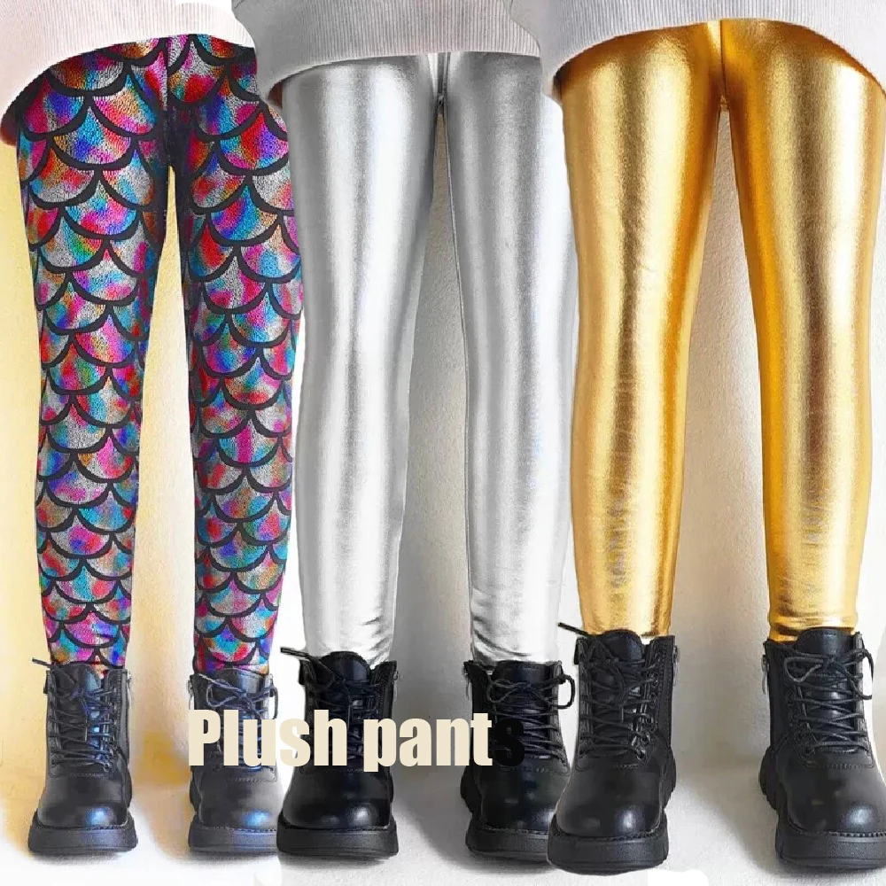 Vêtements pour enfants Pantalons pour enfants Leggings de style heavy metal pour filles Pantalons chauds d'automne et d'hiver pour garçons Pantalons dorés et argentés