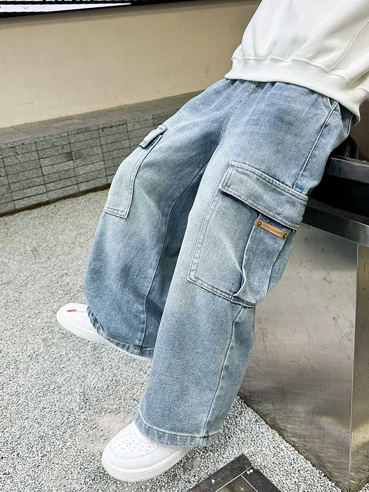 Jeans Cargo Ă jambes droites pour adolescents, pantalons longs en Denim Ă jambes larges pour enfants de 5 Ă 14 ans, nouvelle collection printemps/automne