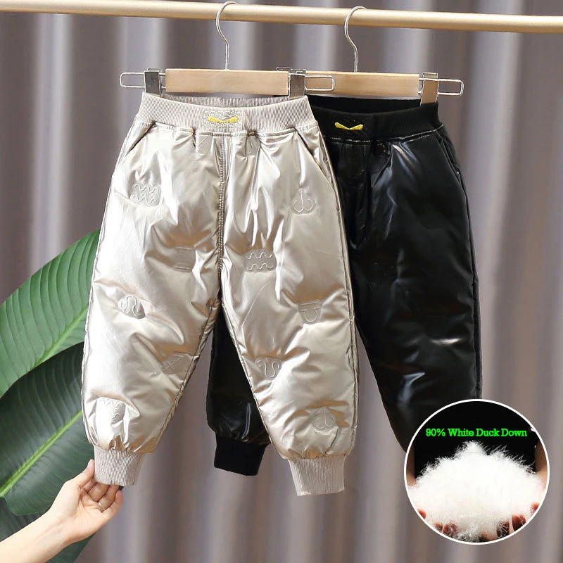 2025 hiver enfants garçon vers le bas pantalon 90% duvet de canard blanc imperméable sans lavage fille hiver pantalon 1-8 ans enfant petit garçon pantalon