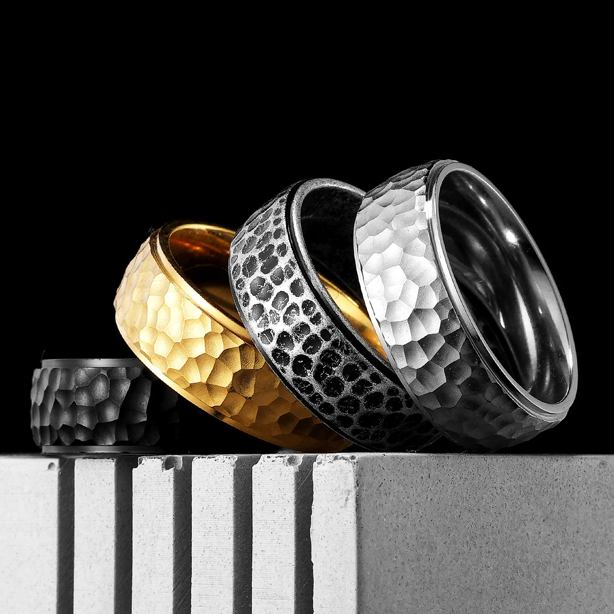 Beat Forging Meteorite Rings for Men, Stainless Steel, Retro Punk Rock, Simple Jewelry for Women, Fashion Accessrespiration Gift, Wholesale