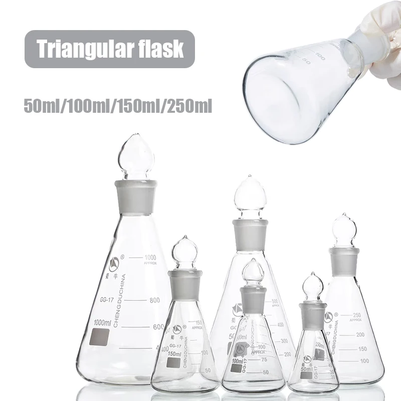 Flacon Lodine 50ml/100ml/150ml/250ml avec bouchon en verre moulu, flacon triangulaire