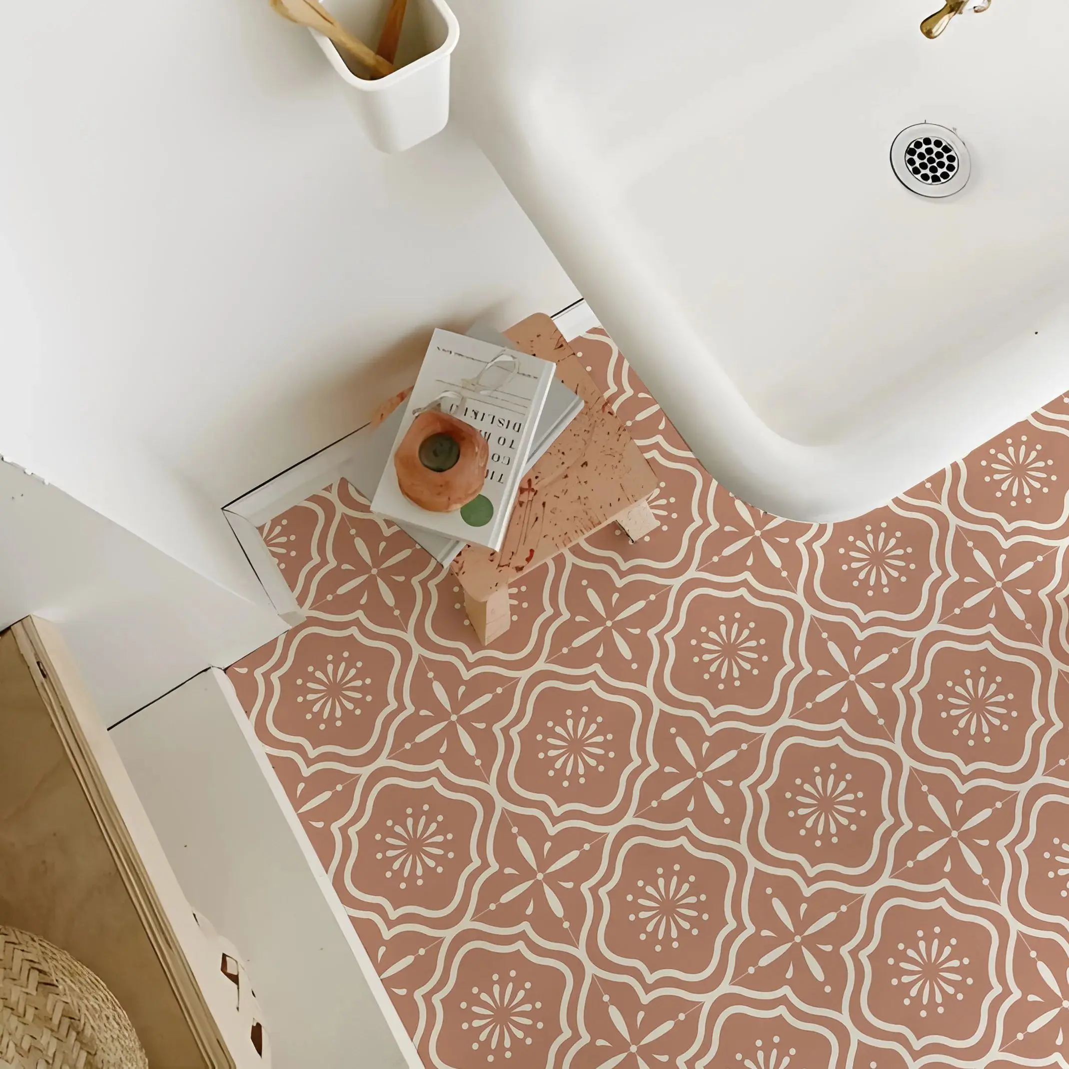 Flora – autocollant de sol en vinyle imperméable pour carrelage marocain, 7.87 "x 7.87", bricolage pour sol de cuisine