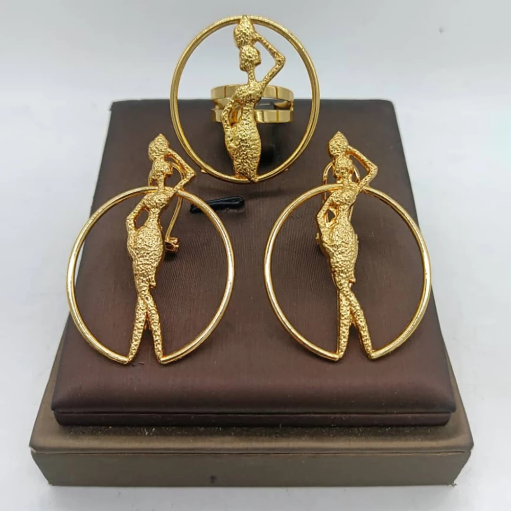Ensembles de bijoux éthiopiens en or pour documents, boucles d'oreilles pendantes, bague, mariage africain et érythréen, fiançailles ethniques, cadeaux de fête, 3 pièces, #033