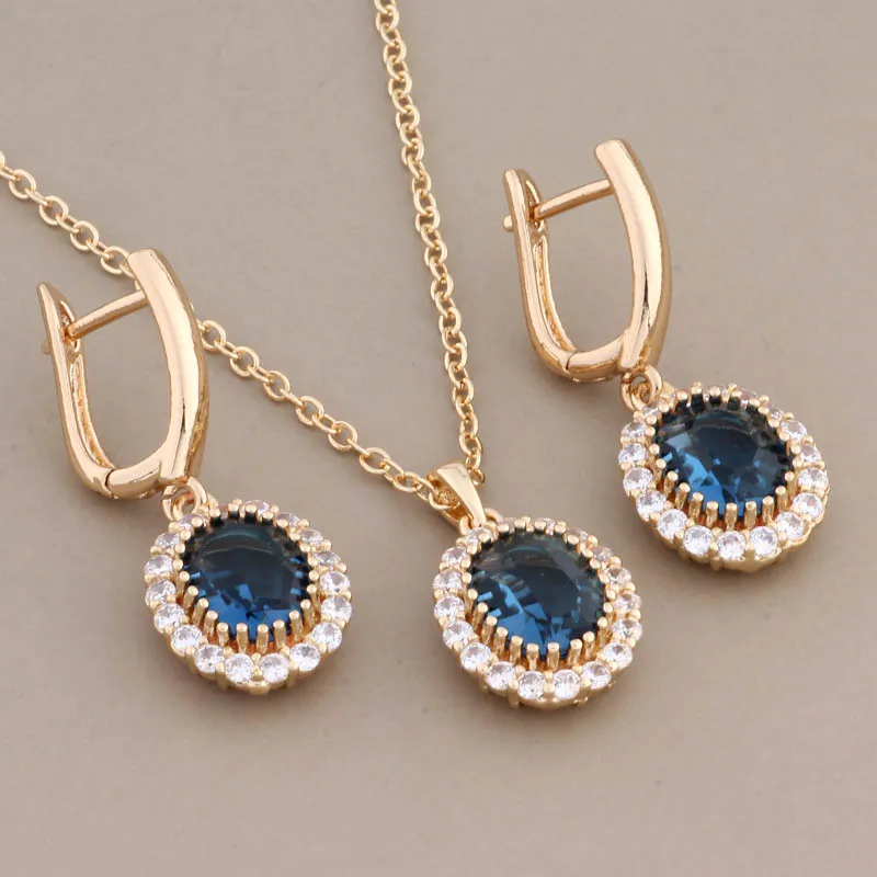 Ensemble de bijoux plaqué or de Dubaï pour femme, collier, boucles d'oreilles, pendentif, QueParty, mode 216.239., design original