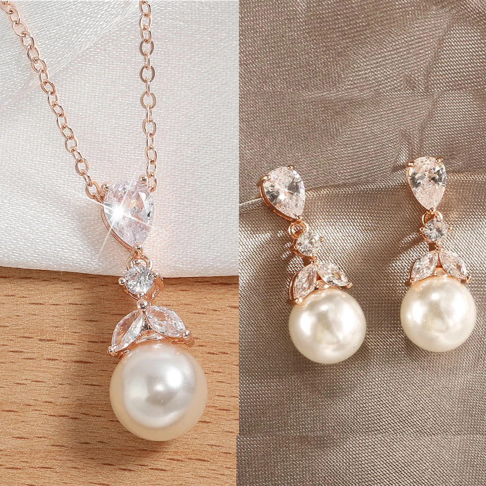 ZAKOL élégant clair Zircon Imitation perle boucles d'oreilles colliers pour femmes minimaliste polyvalent mariée ensemble de bijoux de mariage