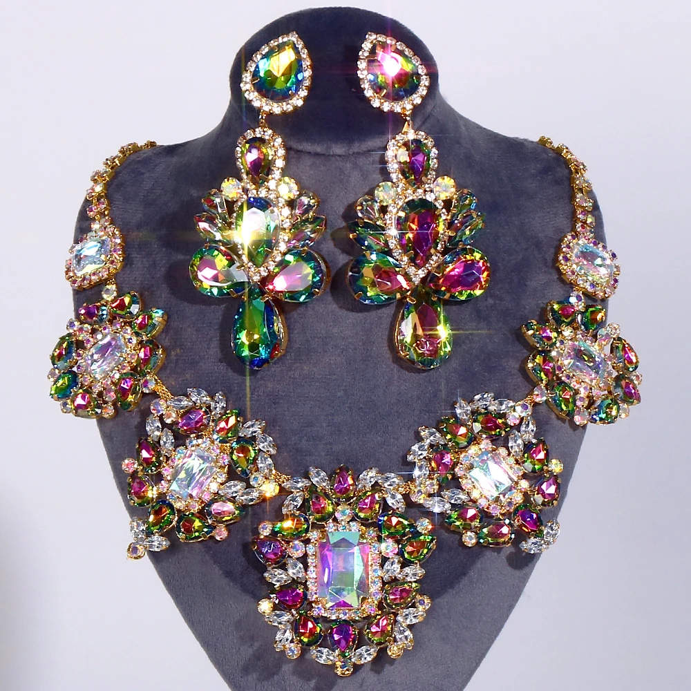 Stonefans – ensemble de boucles d'oreilles et collier en strass pour femmes, accessoires de fête de mariage, Drag Queen, ensemble de bijoux exagérés, cadeau, 2023