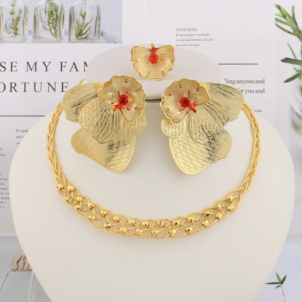 Bijoux plaqués or pour femmes, mode dubaï, Style Design italien, grand collier, boucles d'oreilles festives pour Banquet, accessoires de bague