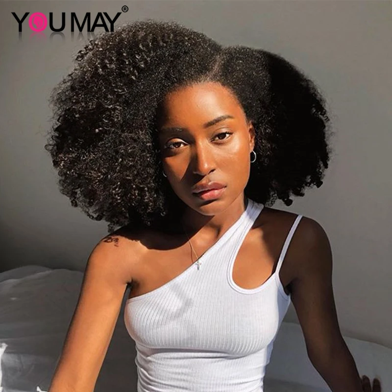4B 4C Afro crépus bouclés pince dans les Extensions de cheveux humains 100% mongol vierge cheveux humains naturel noir pince Ins Afro Bundle vousMay