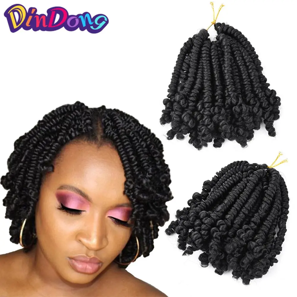 DinDong-Tresses Synthétiques Courtes Passion, Extension de Cheveux Torsadés au Crochet, Noir et Marron, 6 à 8 Pouces, Printemps