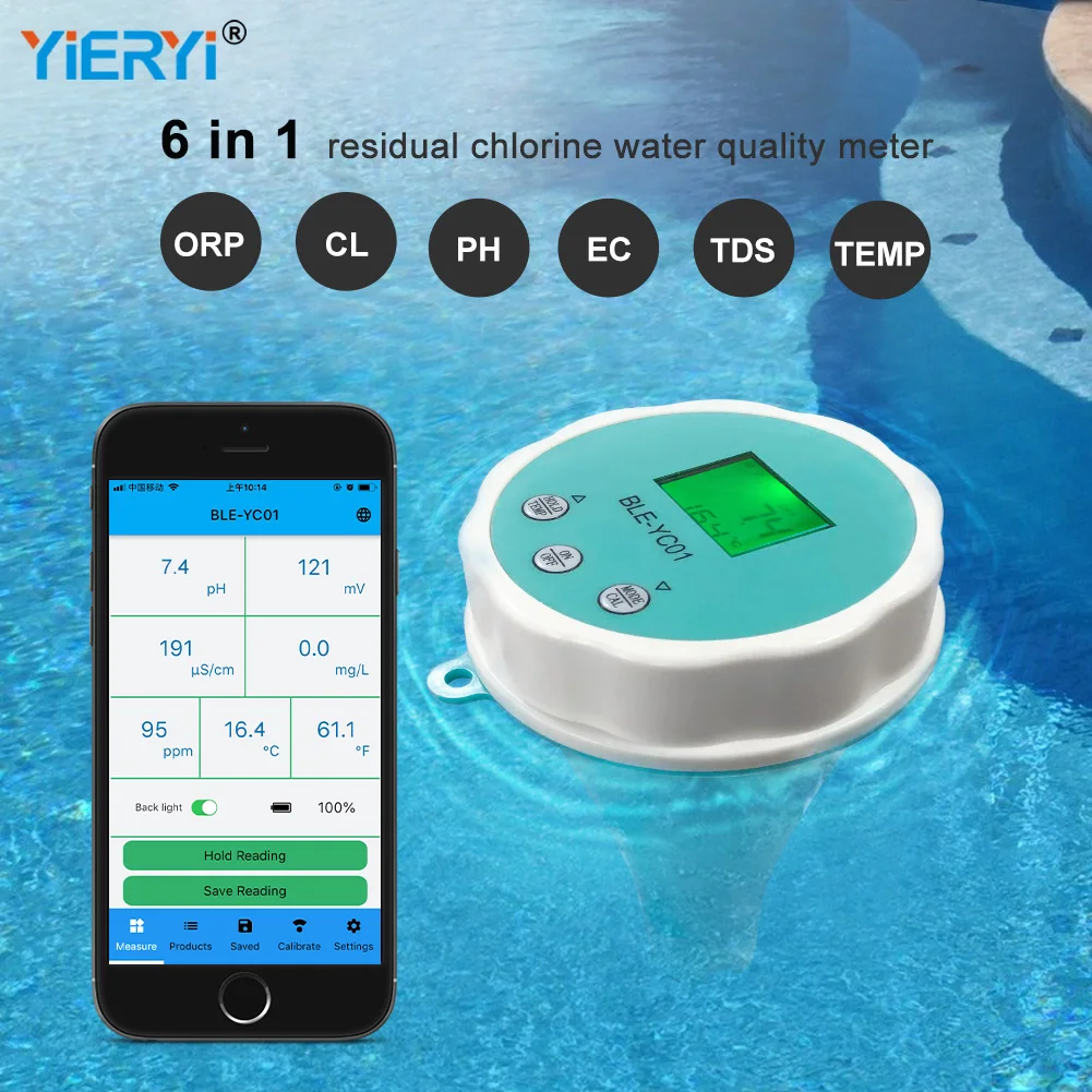 6 en 1 Temp Chlore ORP CE TDS Ph-mètre Bluetooth Moniteur En Ligne Testeur De Qualité De L'eau Outil Intelligent pour Piscine Aquariums