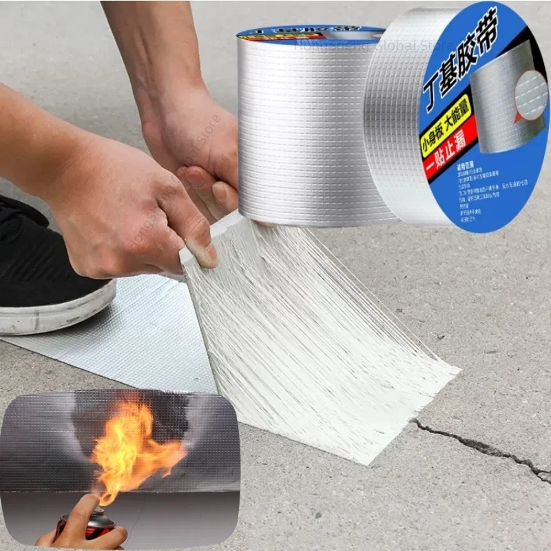 Nouveau papier d'aluminium ruban de caoutchouc butyle fibre Super forte épaissir joint auto-adhésif étanche pour la réparation de tuyaux de toit de piscine arrêter les fuites