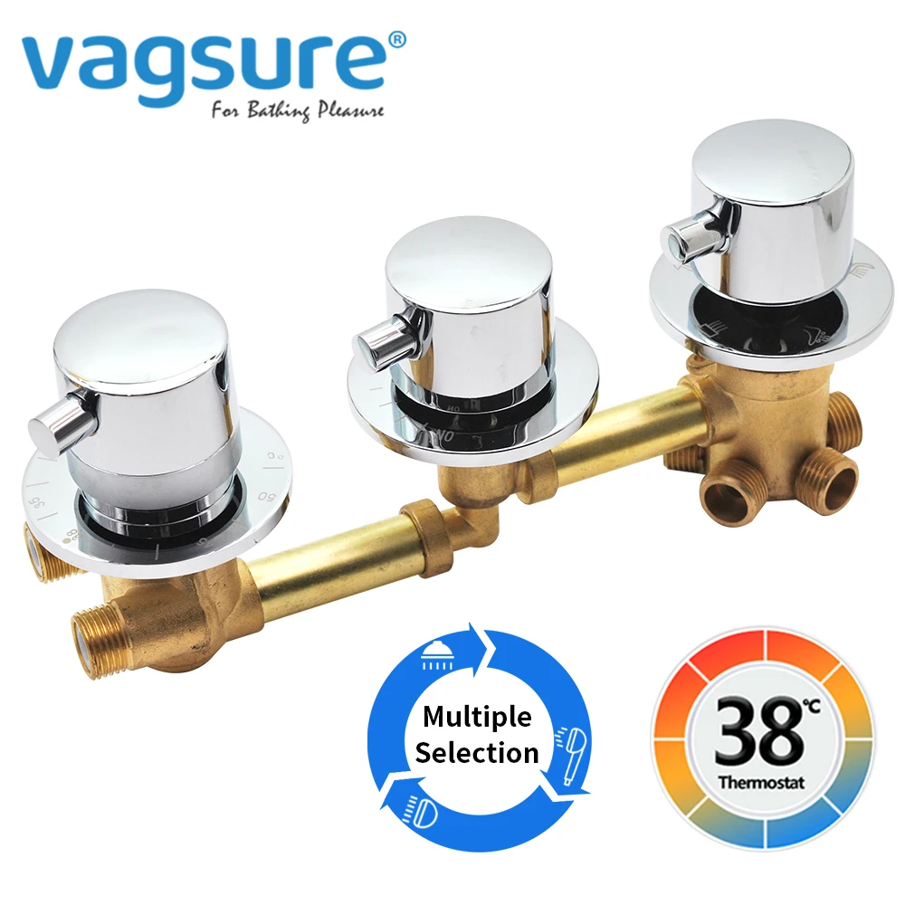 Robinet de commande thermostatique automatique en laiton à triple poignée, robinet de centre commercial, déviateur à 2, 3, 4/5 voies, salle de douche, nouveau