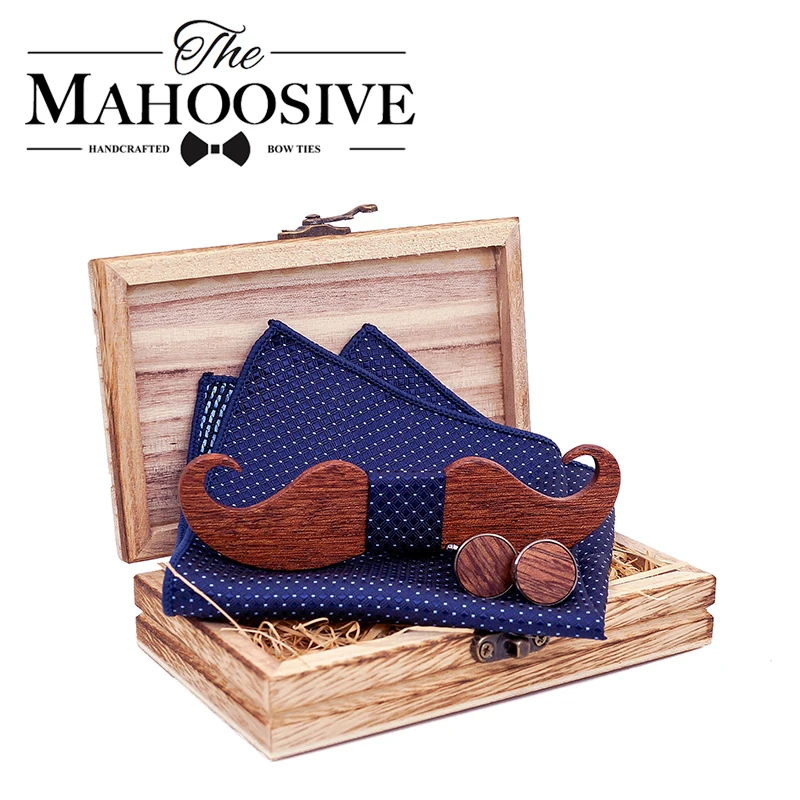 Moustache bois noeud papillon mouchoir boutons de manchette ensembles pour hommes costume en bois noeud papillon livraison directe noeud papillon nœuds papillon cravate