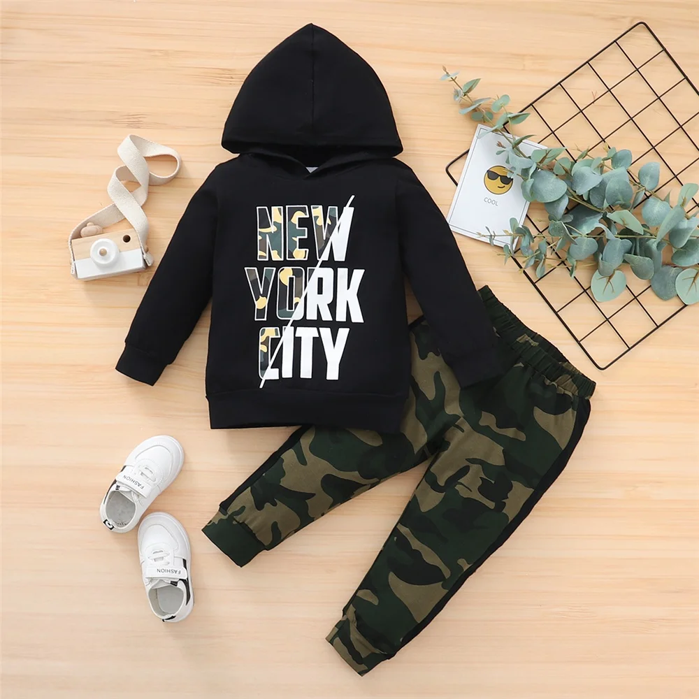 Costume de vêtements pour enfants de 1 à 5 ans, haut à capuche à manches longues + pantalon de Camouflage, ensemble 2 pièces, vêtements à la mode pour enfants garçons