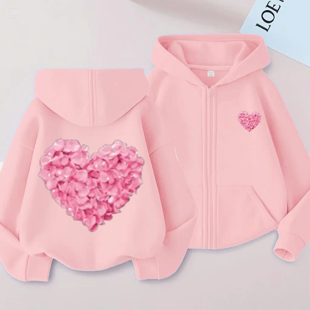 Cardigan imprimé 2D en forme de cœur et de fleur rose pour enfants de 2 à 12 ans, doux et frais, polyvalent, mignon et amusant, énergique