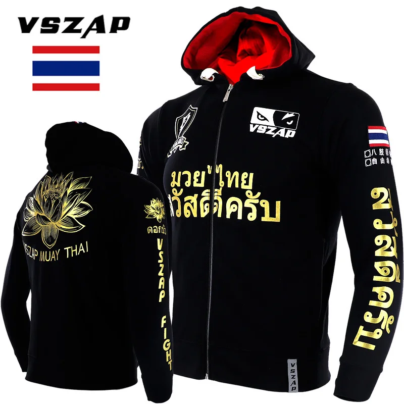 Vszap-Sweat à capuche de boxe thaïlandaise, Sweat de fitness, Gastronomie, Golden anni, MMA personnalisé, Veste à glissière, Pull optique mince