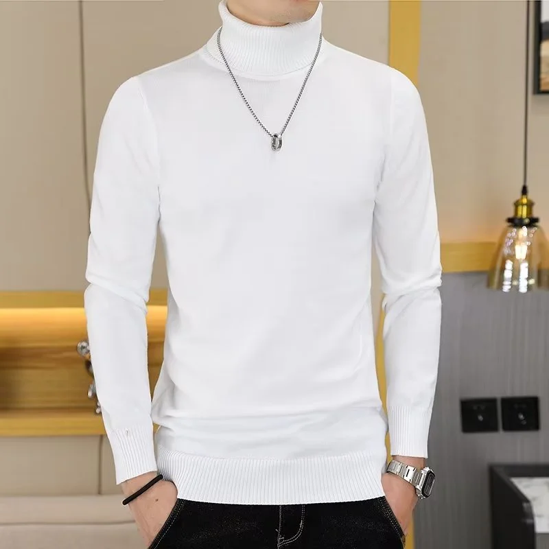 2025 coréen mince couleur unie pull à col roulé hommes hiver à manches longues chaud tricot pull classique solide décontracté chemise de fond