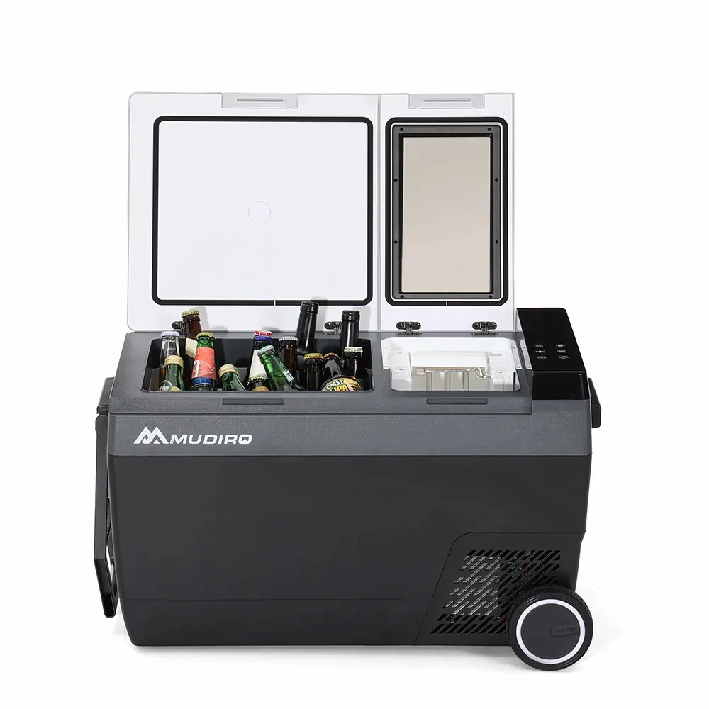 Réfrigérateur de voiture Mudiro 12V avec machine à glaçons 45L réfrigérateur de voiture avec roulettes pour le camping, les voyages, l'extérieur, la maison