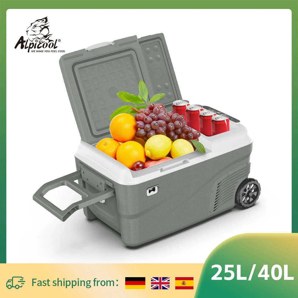 Alpicool-Réfrigérateur Portable pour Voiture, Compresseur 12 Volts, Congélateur, Zone Touristique, Roue et Poignée, Camping et Pique-Nique, DC 25L 40L