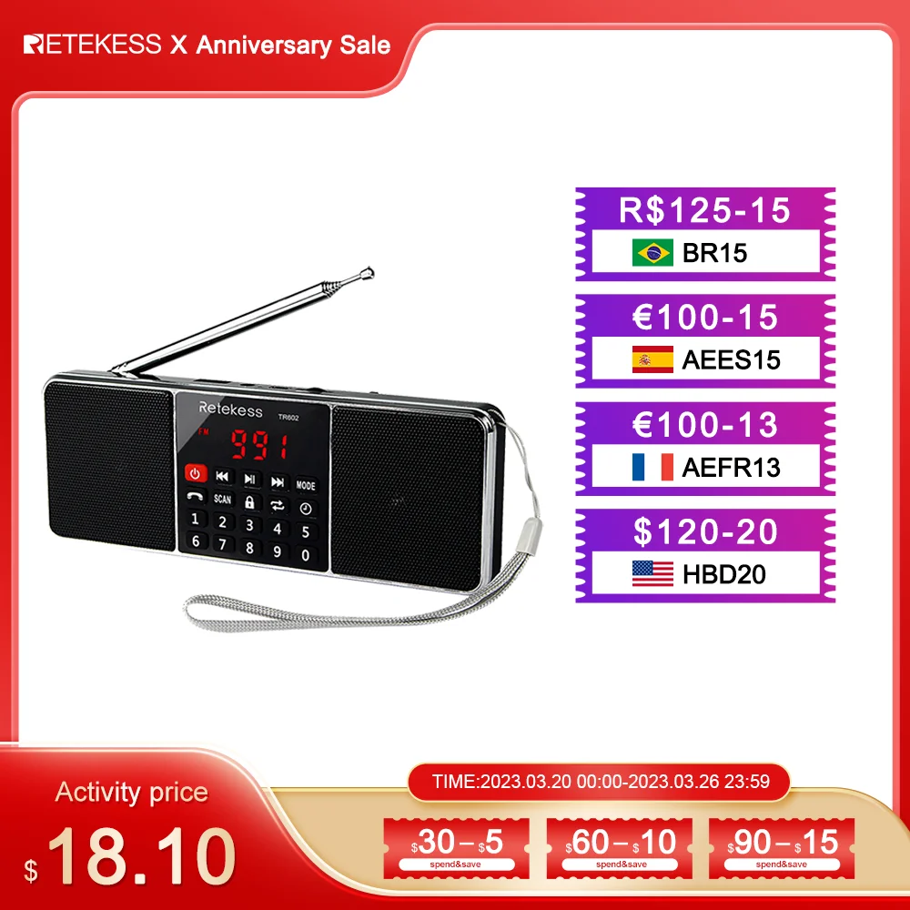 Retekess TR629 Radio Portable AM FM SW Multibande Radio à ondes courtes stéréo Mp3 haut-parleur batterie alimentation ca fonction réveil