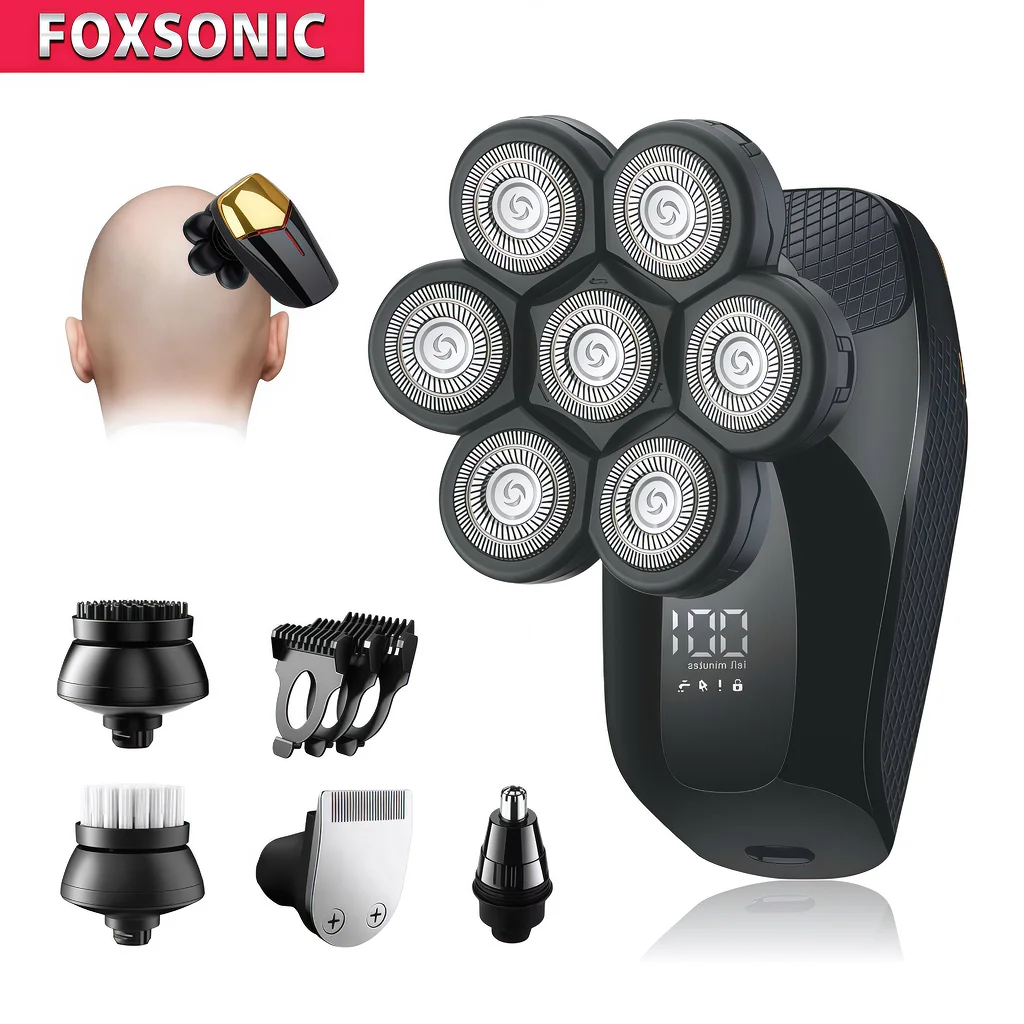 FOXbly-Rasoir électrique aste pour homme, rasoir chauve, kit de toilettage, 6 têtes flottantes, nouveau style, 6 en 1