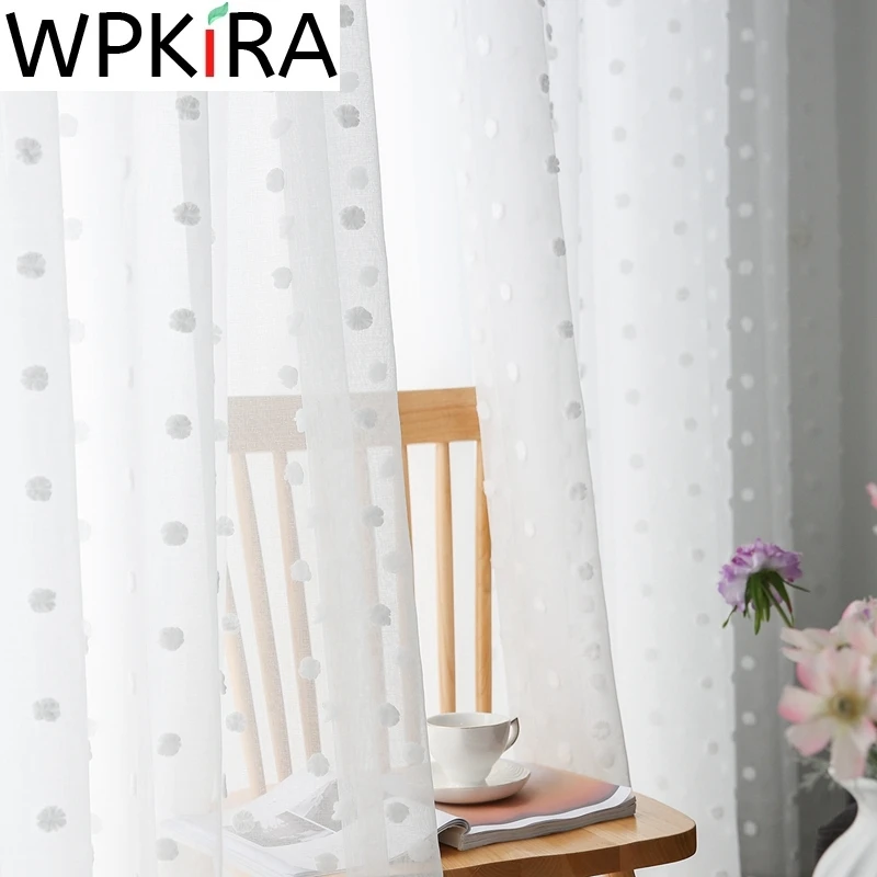Rideau moderne en tulle blanc à pompons, pour salon, chambre de fille, solide, en lin, pour document, traitement de fenêtre, cuisine, ZH036H