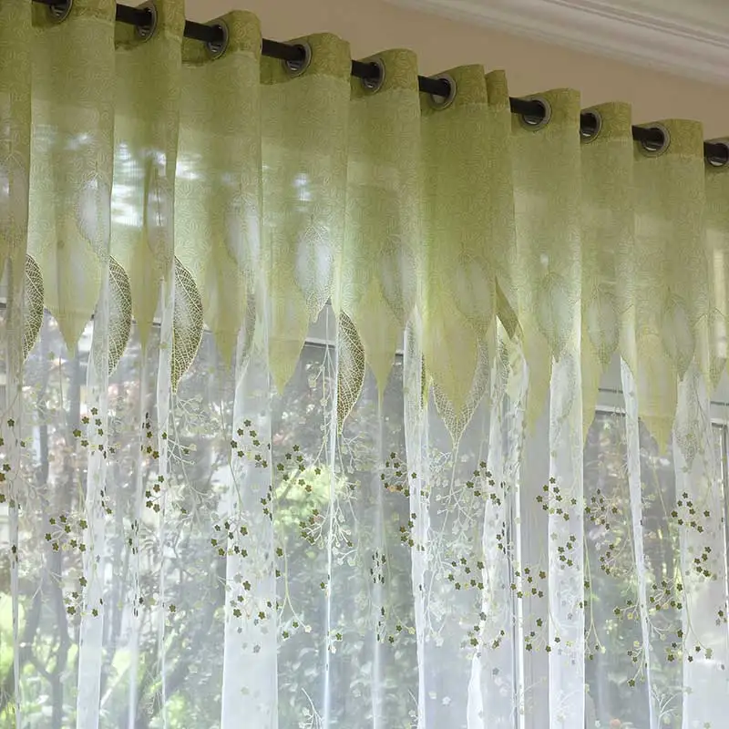 Rideau de fenêtre en Tulle pastoral pour salon, rideau transparent vert pour chambre à coucher, Voile, stores de cuisine sur mesure