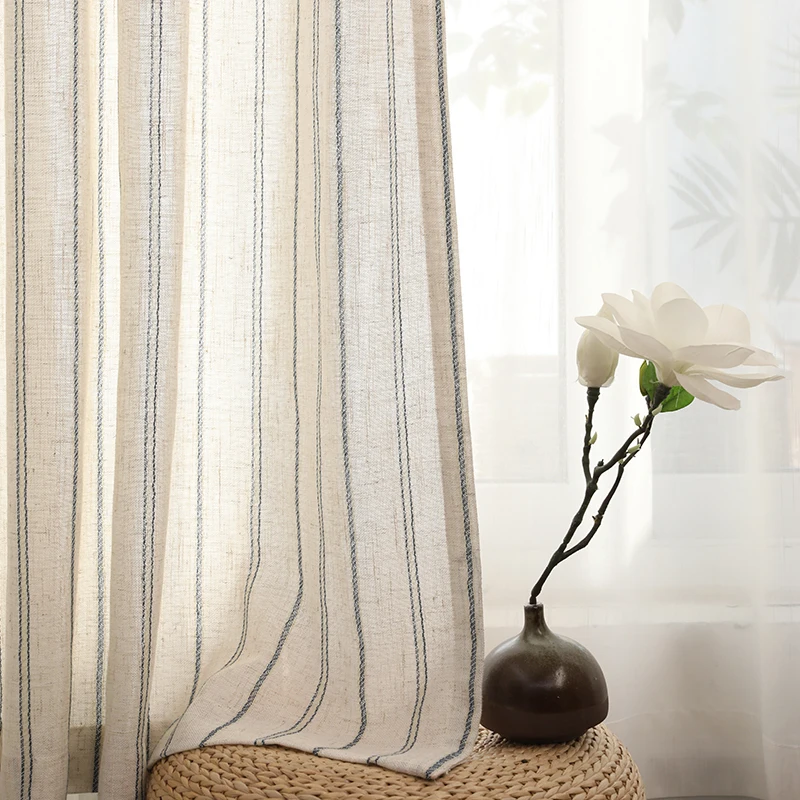 Rideaux transparents à rayures en coton et lin, pour salon, chambre à coucher, fenêtre, pour chambre à coucher, cuisine, fil pour enfants