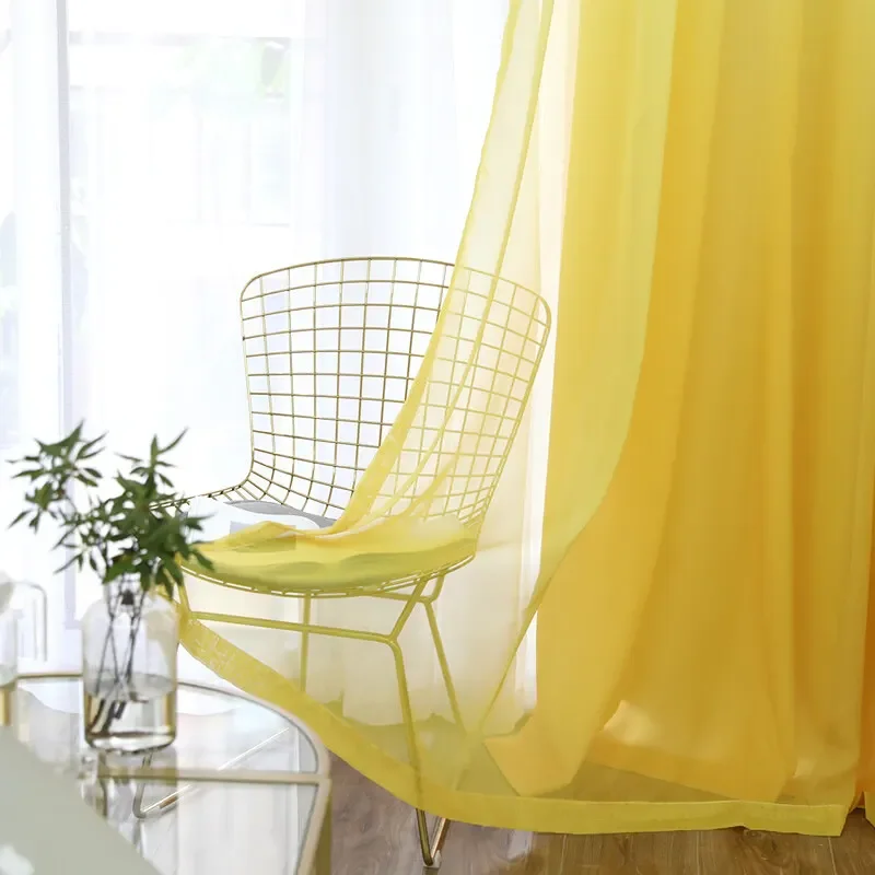Rideau en Voile transparent de couleur unie, pour salon, cuisine, fenêtre moderne, Tulle jaune, traitement en tissu, personnalisé WP184