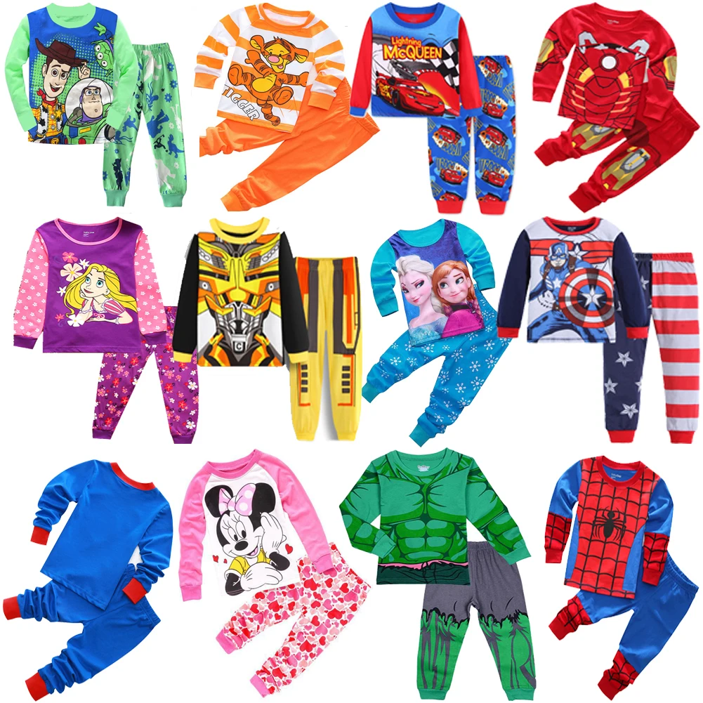 Pyjama en coton trempé à manches courtes pour garçons et filles, ensemble de vêtements de nuit pour enfants, The Avengers, Spiderman, dessin animé, été, nouveau