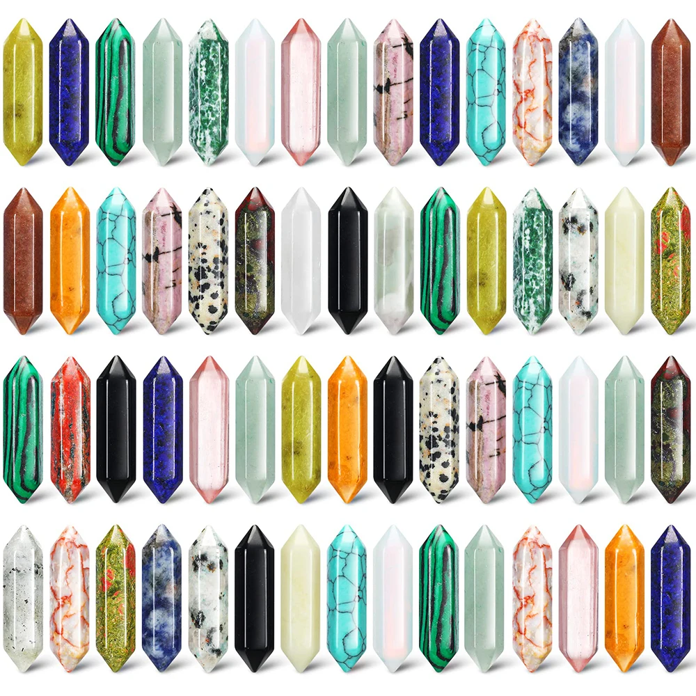 Pierre de cristal naturel à Double pointe, améthyste, colonne sculptée, ornement de guérison Reiki, décoration de maison, cadeau à collectionner, 50 pièces