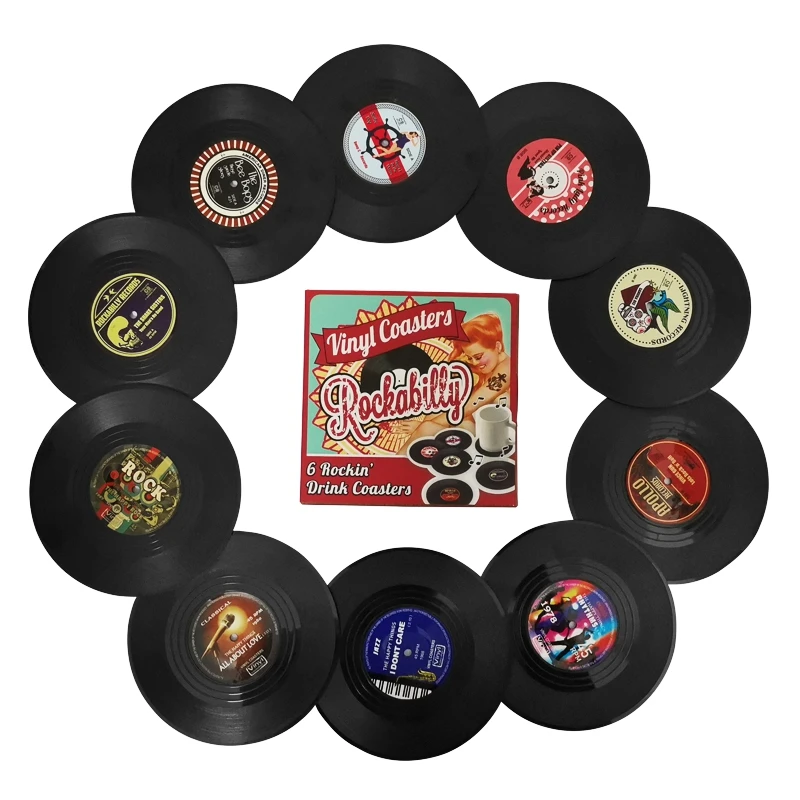 Cowijk-Dessous de Verre Coloré Rétro en Vinyle, Disque pour Boissons avec Boîte-Cadeau, Tapis de Tasse CD Amusant, Accessoires de Cuisine, Outils, 10 Pièces