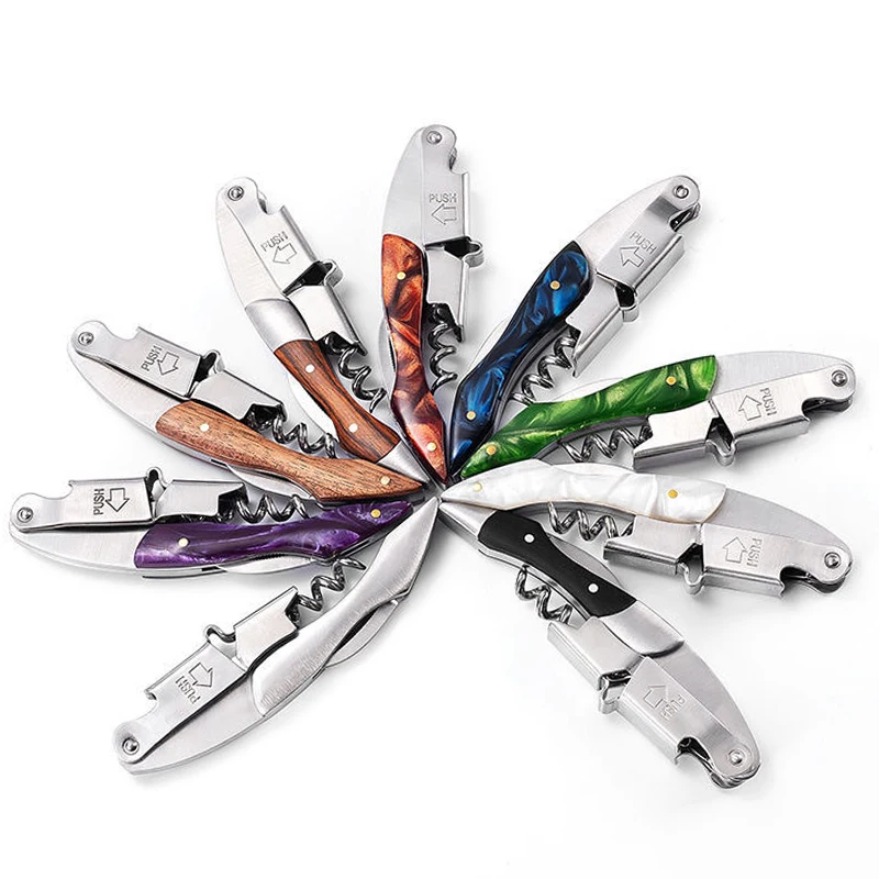 Tire-bouchon pour serveurs professionnels, charnières robustes en acier inoxydable, poignée ergonomique en bois, ouvre-bouteille de bière et coupe-feuille