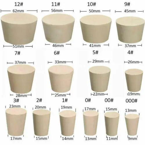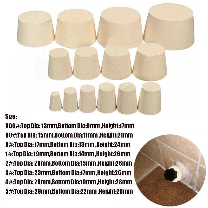 1/5/10 pièces 000 # -20 # Bouchon en caoutchouc solide de tailles assorties, flacon de bouteille de vin, Tube conique, scellage enfichable de laboratoire solide