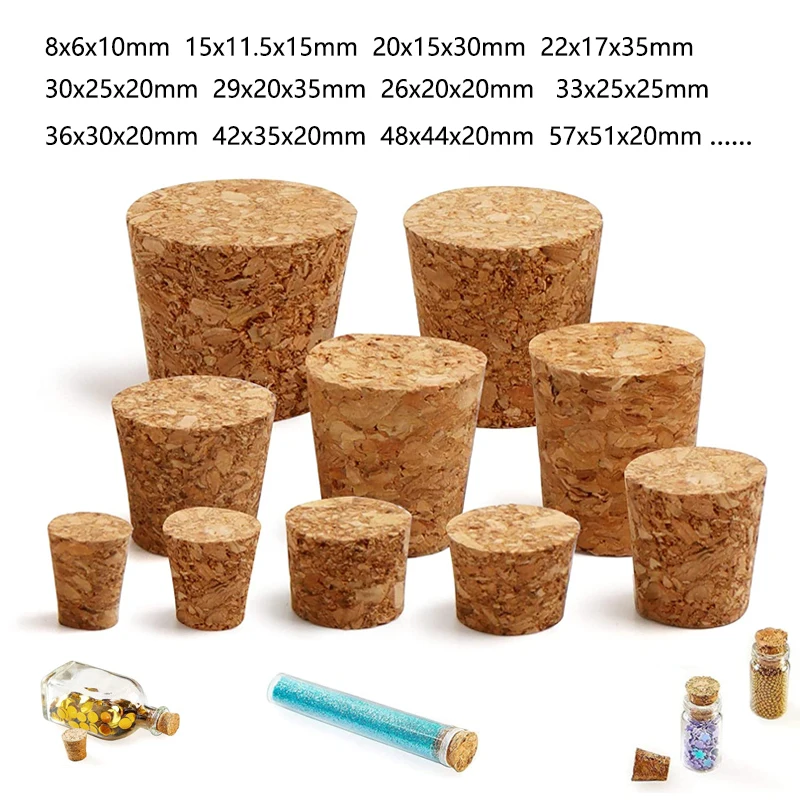 Bouchon de bouteille en verre conique, bouchon de pot de vin pour brassage à domicile, bouteille de bière, récipient de Pudding en liège de chêne, couvercle en bois, bouchon de bouteille de 8-50mm