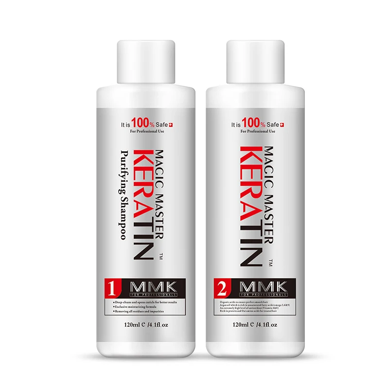 Kératine professionnelle odeur de noix de coco sans formaline 120ml traitement capillaire à la kératine Magic Master + shampoing purifiant + ensemble d'huile d'argan
