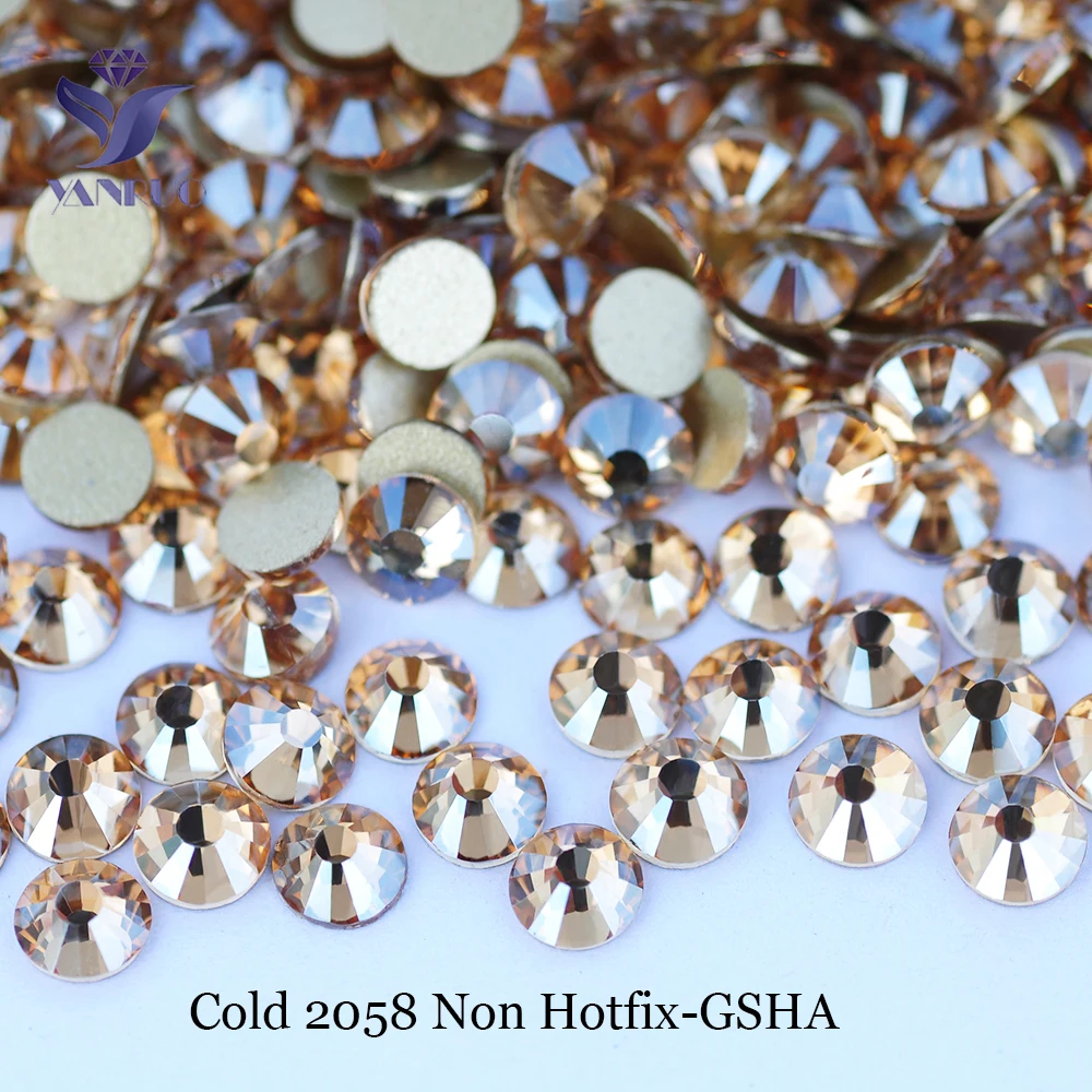 YANRUO 2058NoHF GSHA Strass Non correcteurs cristaux à dos plat pierres de verre pour ongles Strass dorés à coller pour vêtements