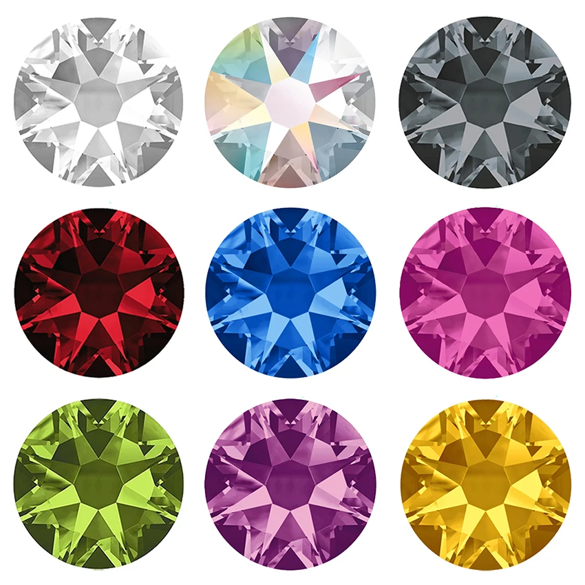 SW Diamante NO Hotfix CZ Strass 8Big 8 petits Strass SS10 ~ SS34 bricolage éléments dos plat Strass pour ongles vêtements décoration