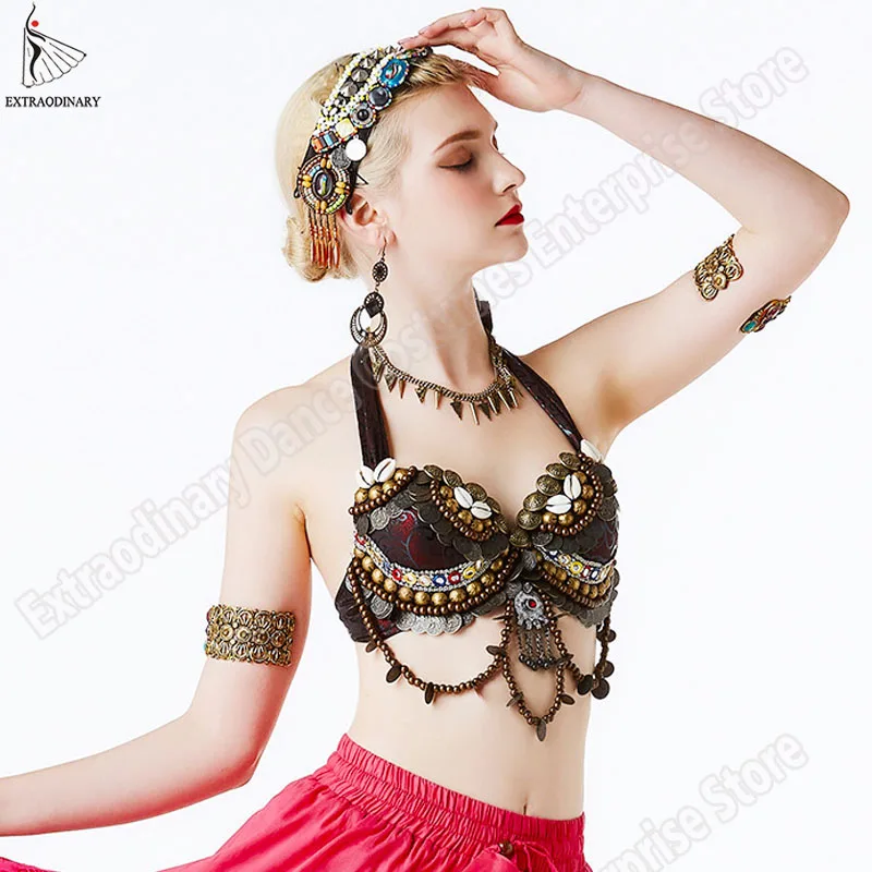Nouveau soutien-gorge gitane Tribal danse du ventre ATS soutien-gorge réglable femmes main perles vêtements de danse du ventre haut Costumes Style gitane