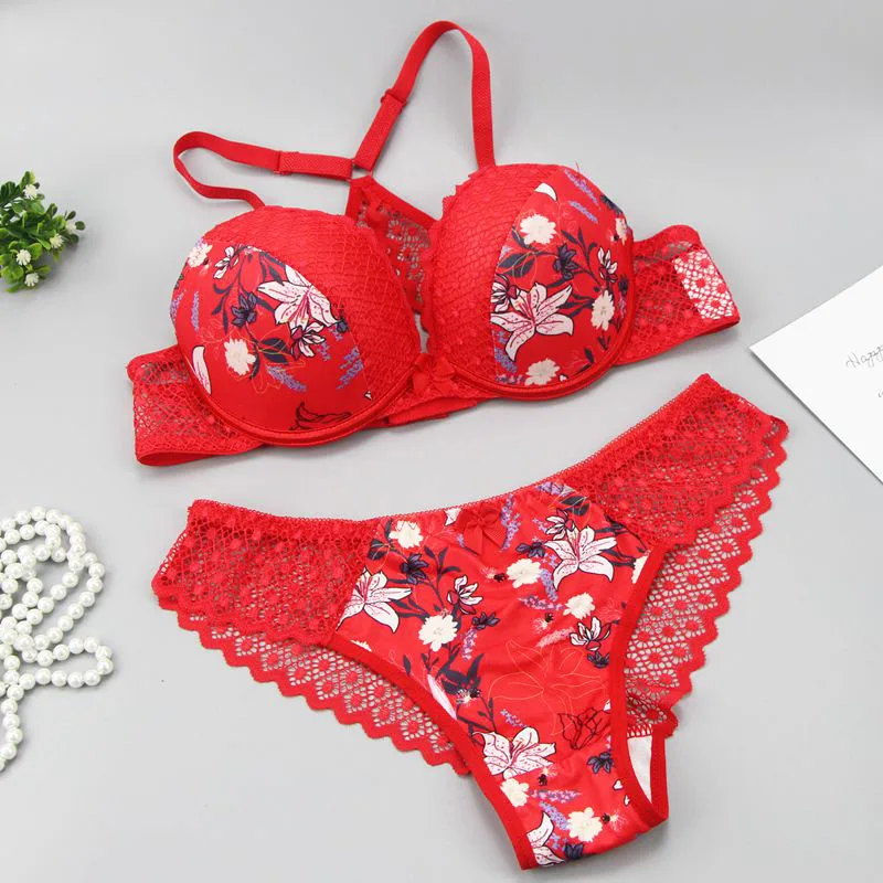Nouvelle marque sans couture Sexy nœud Floral soutiens-gorge pantalon ensemble Push Up sous-vêtements pour femmes BCDE tasse grande taille Lingerie