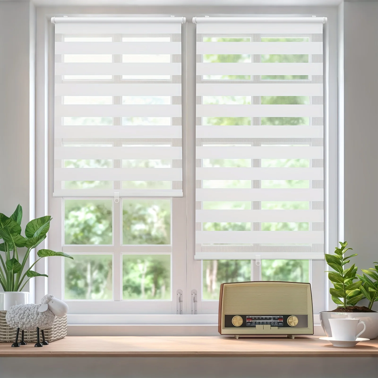 WOLTU – Stores à double rouleau gris zèbre, occultants, sans perçage, translucides, pour porte, fenêtre, chambre, salon, maison
