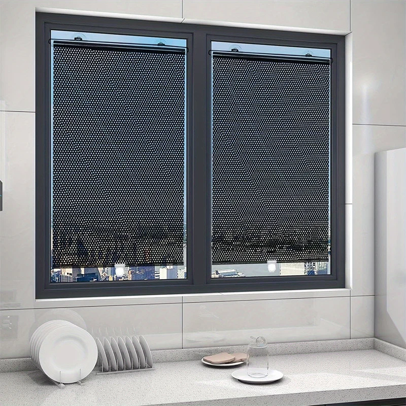 Pare-soleil à rouleau rétractable sans fil, noir, pour fenêtres de bureau et de maison, stores thermiques sans perçage, rideau occultant
