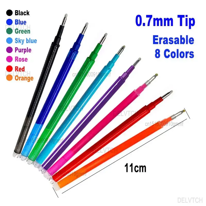 Recharge de stylo gel effaçable avec poignée lavable, encre bleue et noire, pointe conique, bureau, école, écriture, papeterie, plus récent, ensemble de 8 pièces, 0.7mm